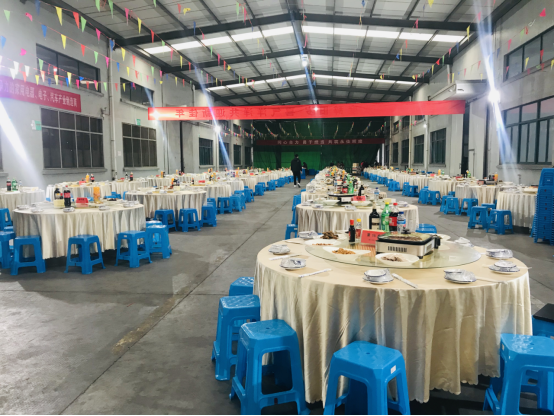 走進聚餐現場,喜慶的氛圍撲面而來。色彩鮮艷的彩旗迎風飄揚,靈動又熱烈,將現場的年味拉滿;醒目的橫幅高懸其上,字里行間承載著公司對全體家人的期許與祝福,每一處布置都藏著用心,每一縷氣息都透著團圓,讓遠離家鄉的伙伴們,也能感受到家一般的溫暖與歸屬感。